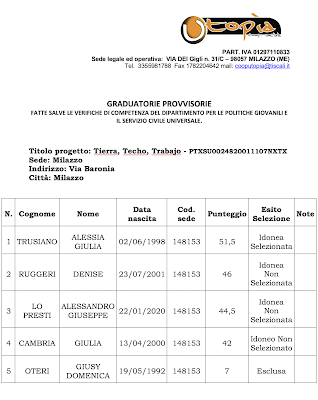 GRADUATORIE PROVVISORIE: Titolo progetto: Tierra, Techo, Trabajo – PTXSU0024820011107NXTX Sede: Milazzo Posted by Consorzio Nova Posted on 1 Aprile 2021 Fonte http://www.cooputopiamilazzo.com